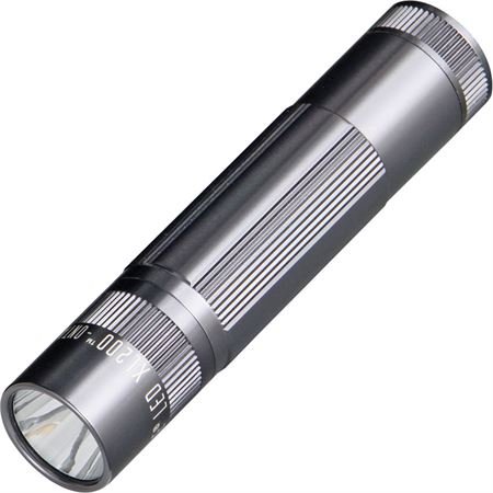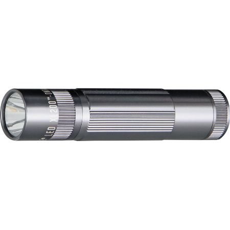 Studio : Mag-Lite Publisher : Mag-Lite Product Description Maglite XL-200 Series LED Flashlight. 4 3/4" overall. Five selectable modes: high power, strobe, nite-lite, signal and SOS mode. "Spot-to-Flood" adjustable LED beam with up to 172 lumen output. Gray anodized aluminum construction. Push button tail cap switch. Motion-controlled variable power level and strobe rate. Uses three AAA batteries (included). Battery life: 2 hours, 30 minutes on high, 218 hours on low. Water resistant. Black hardshell gift box. 0