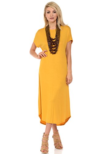 This dress features banded crew neckline, short sleeves, round hem and pull over style. It is made with a soft jersey knit for better drape and stretch. Accessories not included.