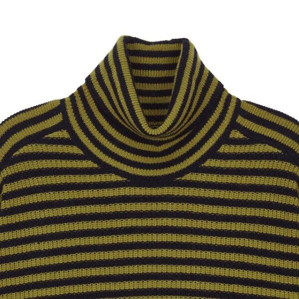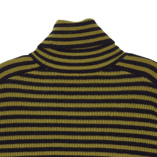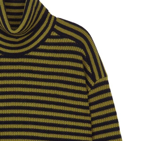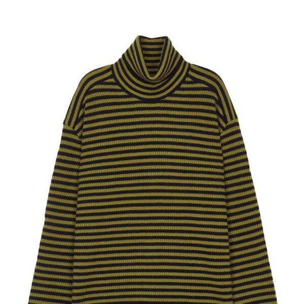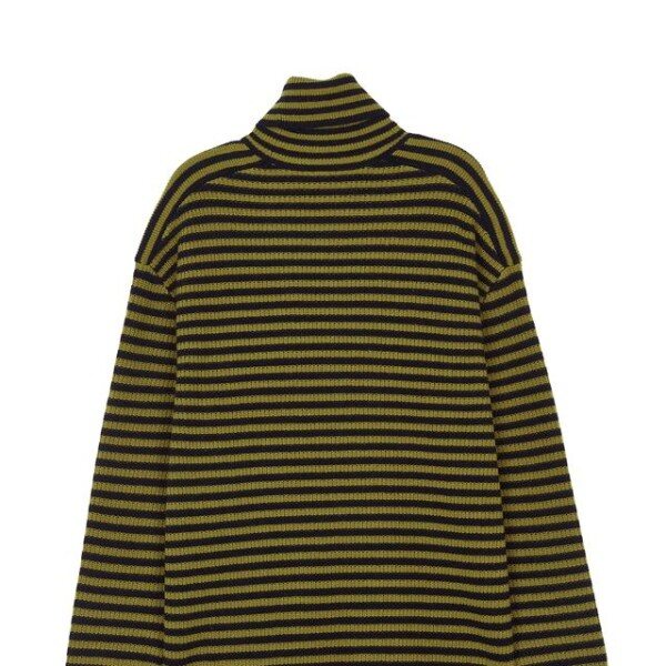목을 감싸주는 터틀넥 디자인의 컬러를 더한 스트라이프 패턴이 어우러저 캐주얼한 외관을 연출한 레귤러 핏 긴팔 니트입니다.