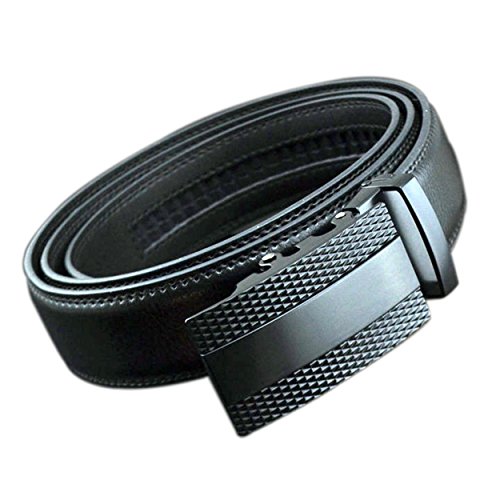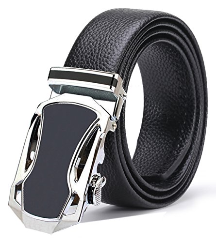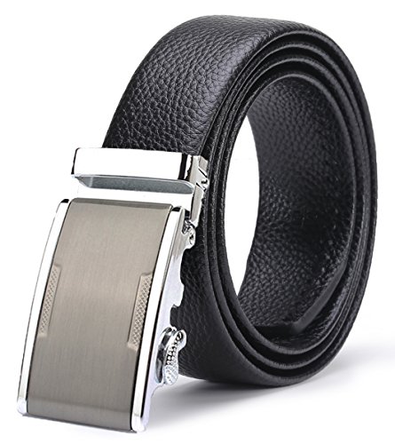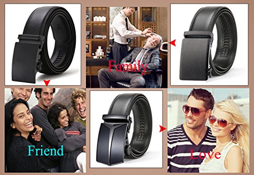 ITIEZY Ratchet Automatic Buckle (Sliding Buckle) Leather Belt Strap for Men Black