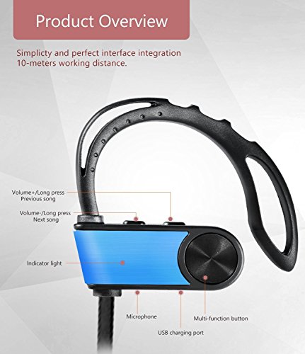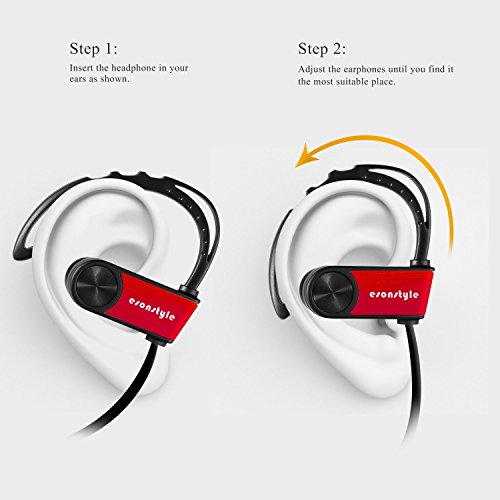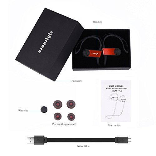 -. Feature : Advanced Technology: With bluetooth 4.0 and apt-X tech, the headphones ensure high-fidelity stereo music and clear speech within 10 meters. Invisible nano-coating technology protect earbuds against sweat during running and workouts. / Stable in ear,freedom in sports: Esonstyle Bluetooth headphones feature a comfortable ear hook .The ergonomic design is made to rest perfectly in your ear canal, this bluetooth headset is not only extremely comfortable but also secure. / On-ear Control for Calls and Music: you can simply stream and control your music and calls via your headset. So you won't worry about missing an important call while exercising or slow down your pace purposely for the call any more. / Long Stand-byTime:The earphones have a high-quality polymer battery that gives up to 180 hours of standby time. The earphones can provide 6-7 hours talk time from a 2 hour charge. / Universal Device Compatibility --- Our headphones are compatible with most bluetooth-enabled devices & apps. Such as iPhone, iPad, Galaxy, Note, Tab, Nexus, Nokia and other Bluetooth enabled device