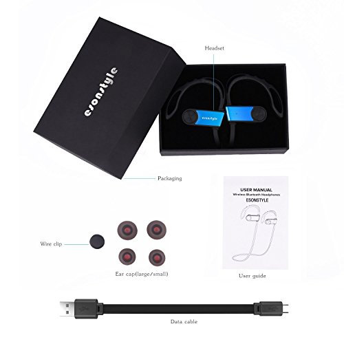 -. Title : Bluetooth Headset, Esonstyle Bluetooth Headphone V4.1 Wireless Sports In-Ear Earbud Sweatproof Running Gym Earhook Headsets with Built-in Mic for Smartphone Tablet and More