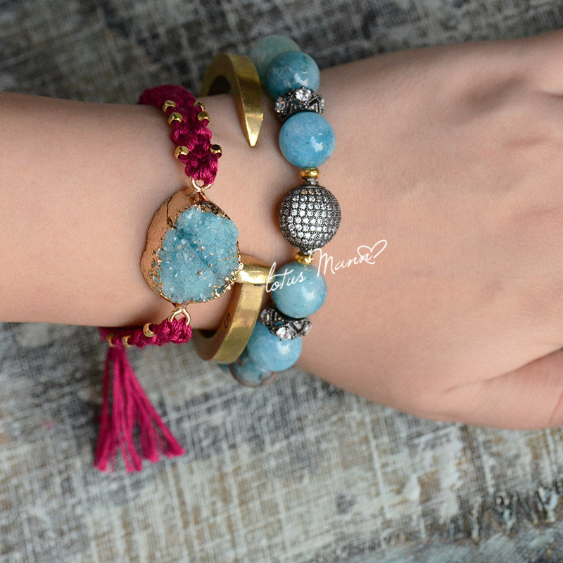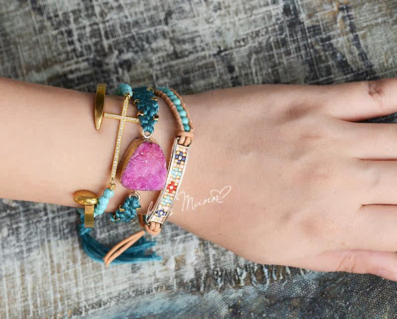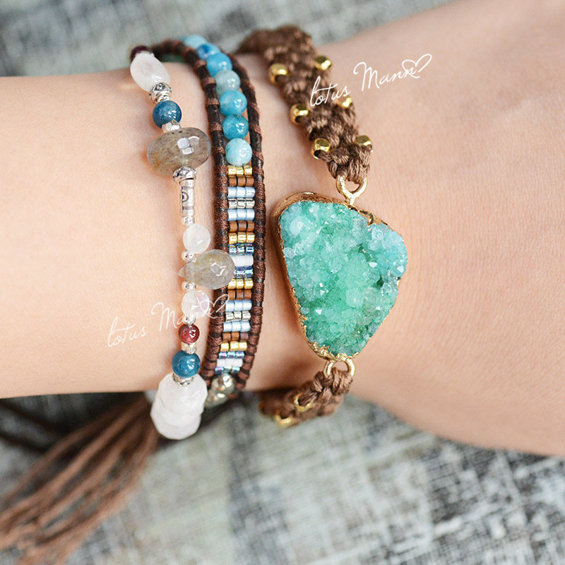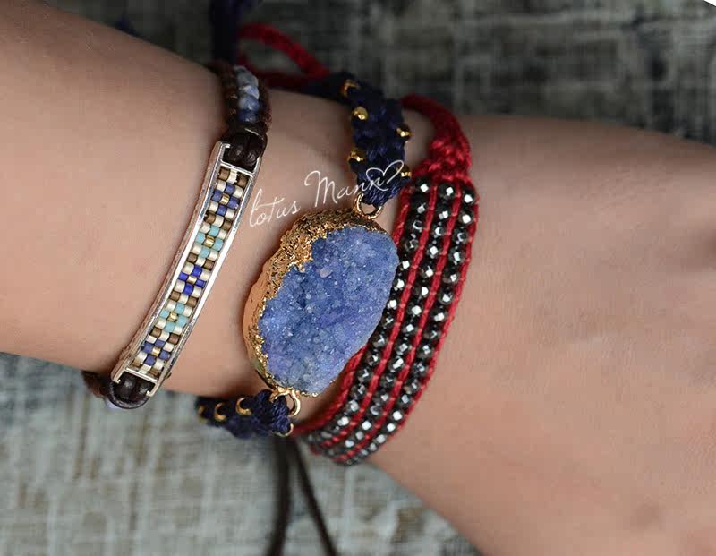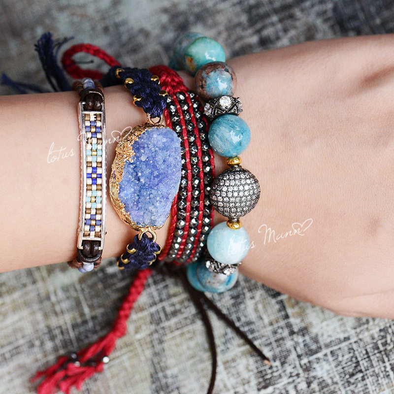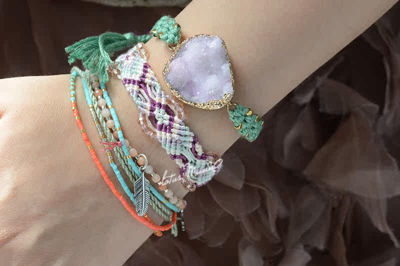 | 名称/Name: | Lotus Mann路塔斯曼多色水晶聚宝盆原矿晶簇全棉编织手链 | ||