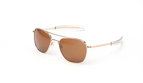Originally built for the U.S. Military, our flagship Aviator surpasses rigid mil-spec standards. Standard issue since 1982, these are battle tested and relevant to the most rigorous and demanding use. Worn by pilots, taste-makers, and those who demand the best. made in USA using the finest components found worldwide. signature bayonet temples designed for military pilots lifetime-warranted solder joints Military Issued: HGU4/P, MIL-S-25948 mineral crown glass lenses 98-100% UV Protection adjustable cushioned silicon nose pads for customized fit available as a prescription frame with optional sunglass clip-ons Tour of Duty: Vietnam, Desert Storm, Korea, and Kosovo A case, microfiber cleaning cloth, and small maintenance kit is included with your purchase.