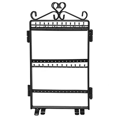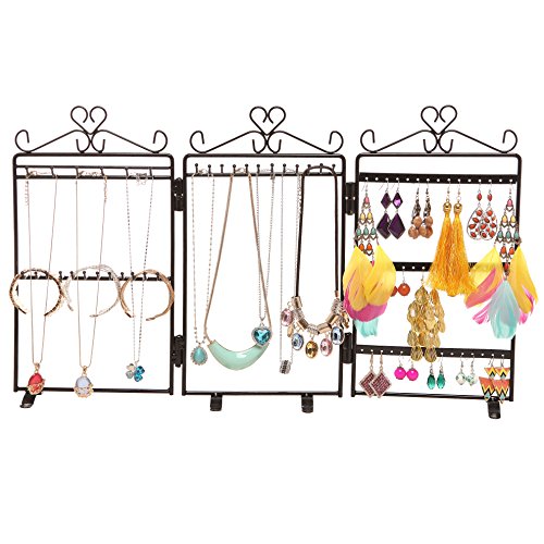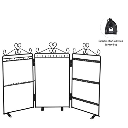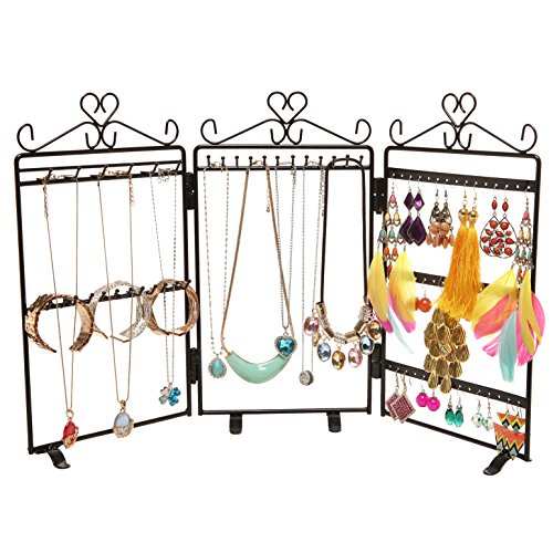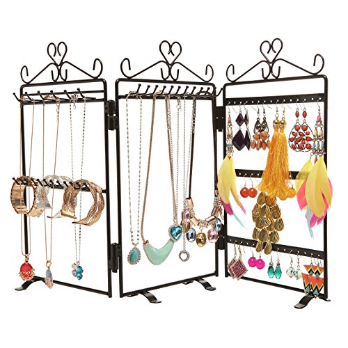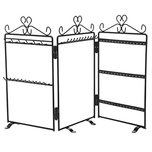 Black 3 Panel Heart Design Trellis Folding Jewelry Hanger Stand for Earrings, Necklaces & Bracelets