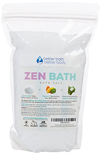 This NEW "Zen Bath Salt" Is Now Available From *Better Bath Better Body* - Everyone's Favorite Bath Soak Brand On Amazon! Enjoy a gentle, calming, soothing, relaxing, & heartwarming bath soak made from all natural ingredients including USP Grade Pure Epsom Salt, 100% Certified Pure Essential Oils, & Vitamin C Crystals. Includes 3 high quality certified pure essential oils - Cedarwood Essential Oil, Eucalyptus Essential Oil, & Rosemary Essential Oil - all designed in the tradition of ancient Japanese bath rituals. Try this all natural bath salt & save more when you buy more! Buy 2 & Save 10% - Buy 4 & Save 15% - Buy 6 & Save 20% - Buy 8 & Save 25% - Buy 10 & Save 30% off your total purchase! Your discount will appear at checkout. Made in San Diego, California, USA from all natural ingredients with zero chemical additives, zero chemical fragrance, zero added perfumes, and zero chemical coloring. It's all natural - just like a therapeutic bath should be!Feature