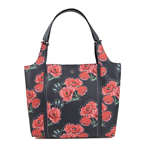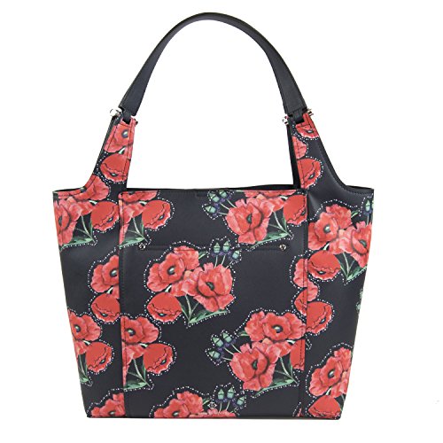 Update your look with the floral printed shopper tote. A magnetic snap opens to a spacious interior with a zip pocket. This tote mixes traditional style with contemporary chic.