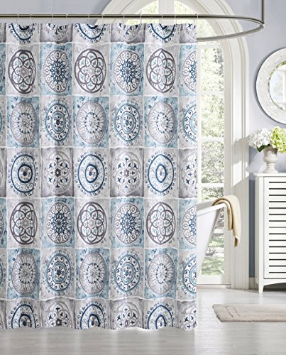 Luxury Home 13 Piece Devon Faux Silk Shower Curtain Set, Blue/Grey