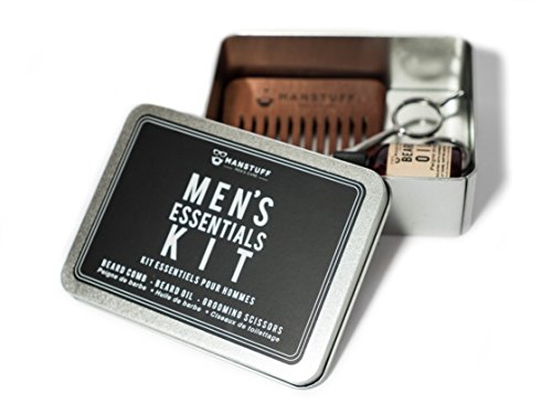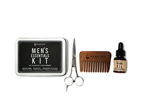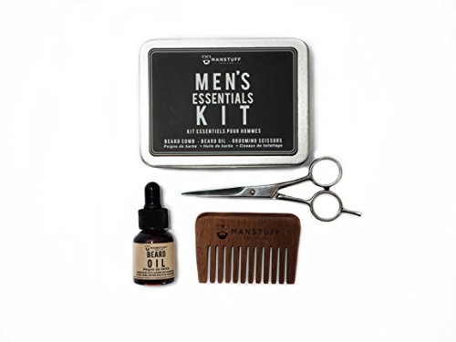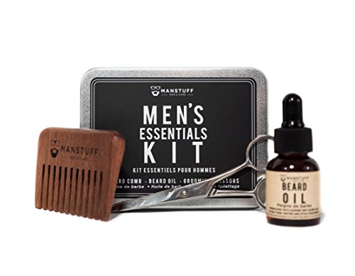 MANSTUFF Men's Essentials Grooming Kit - Beard Comb, Beard Oil, Grooming Scissors
