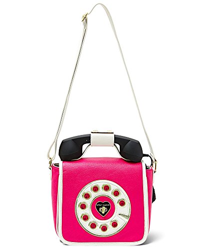 Imported Phone handle connects to your cell phone thru audio jack and will let you talk, has volume controls, and button to answer/end calls Main Compartment turn lock closure and signature Betsey Johnson Lining Interior slip pockets and zippered wall pocket. Gold metal wares. Strap drop of 21" Latest classy designs that goes perfect with any outfit, jeans, stilettos, dress, Etc. Perfect for any occasion, day or night event!