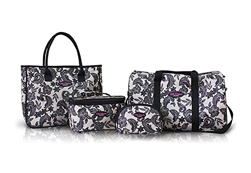-. Brand : Trendyflyer Collection -. Color : Black and Beige -. EAN : 0746839981560 -. Feature : Color: Black and Beige / Material: Nylon / Pattern: Floral / Toiletry: 9.65" L x 6.1" W x 5.51" H / Toiletry Weight: 0.33 lbs / Duffel Bag: 18.11" L x 10.04" H x 11.42" W / Duffel Weight: 1.08 lbs / Clutch: 8.46" L x 0.98" W x 4.92" H / Clutch Weight: 0.13 lbs / Tote: 15.55" L x 4.13" W x 12.40" H / Tote Weight: 0.62 lbs -. PackageQuantity : 3 -. ProductGroup : Apparel -. ProductTypeName : LAGE -. Size : Large -. Title : 4pc Duffel Travel Bag Clutch Toiletry Cosmetic Purse Tote Set Floral Beige -. UPC : 746839981560