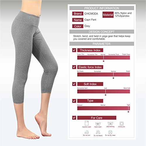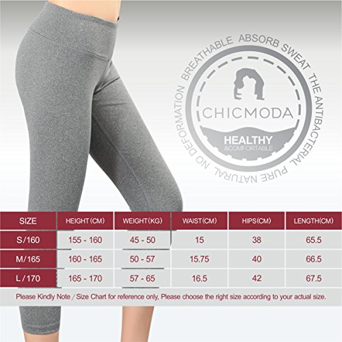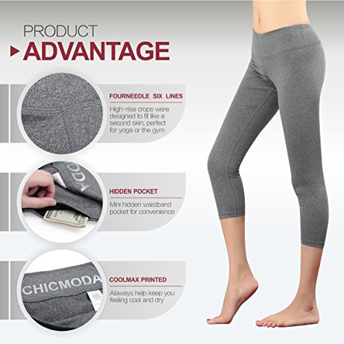 CHICMODA Women's Yoga Capris Mid-Waist Pants Gym Tights with Hidden Pocket