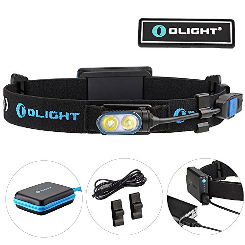 Bundle : olight hs2 lightweight rechargeable running headlamp cree cw led 400 lumen brightest compact micro-usb charging flashlight with customized 2000mah 3.7v lipo battery with olight patch