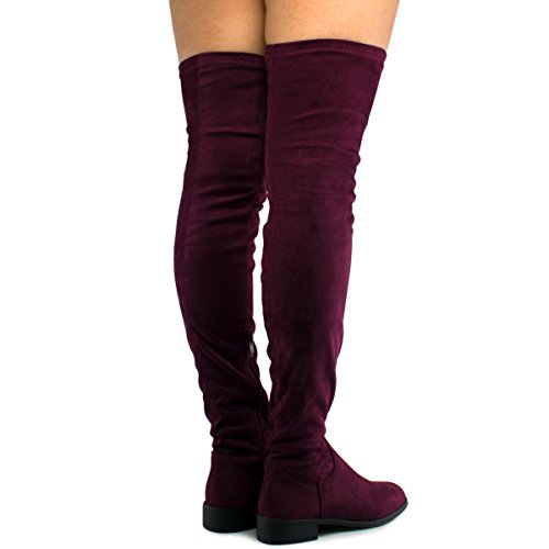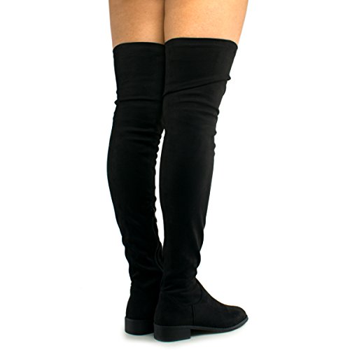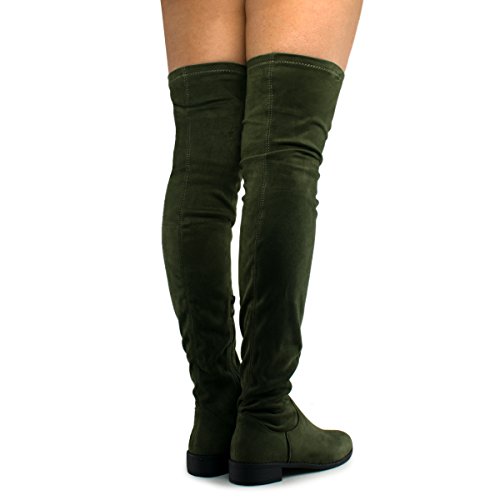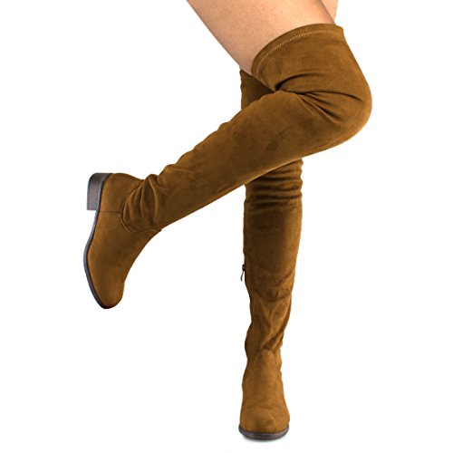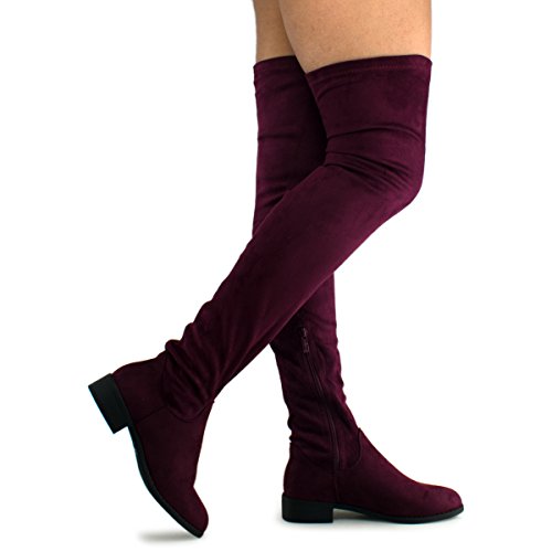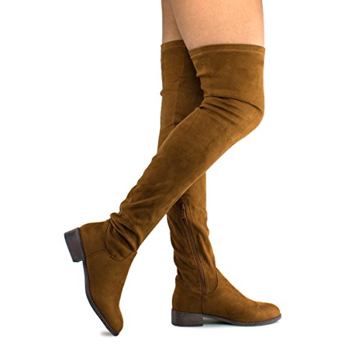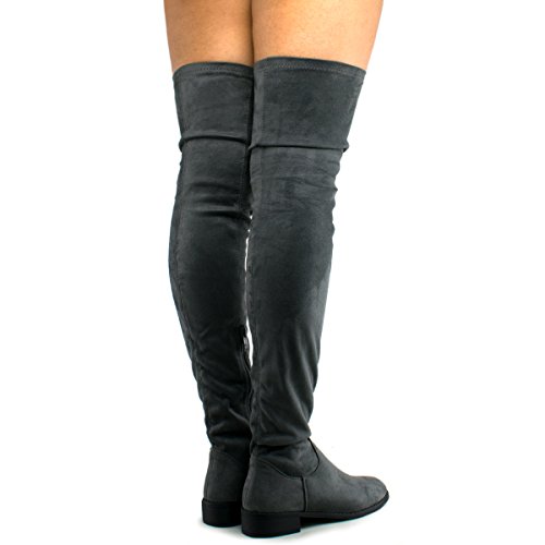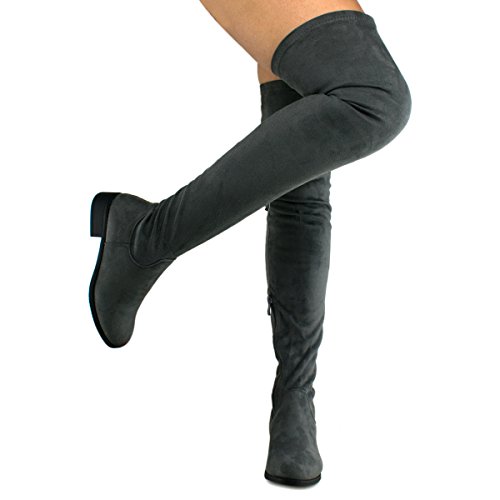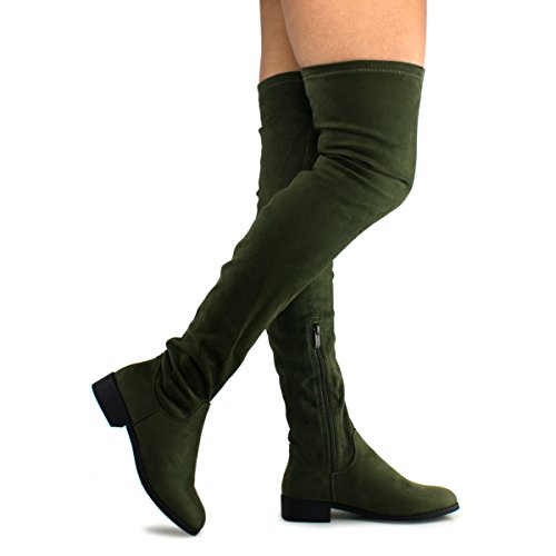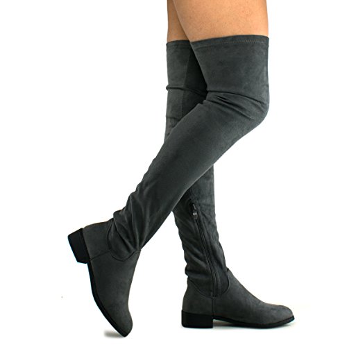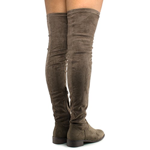 Women's Fashion Comfy Vegan Suede Block Heel Side Zipper Thigh High Over the Knee Boots