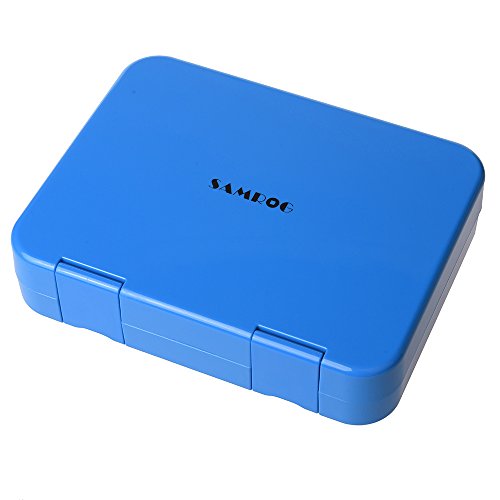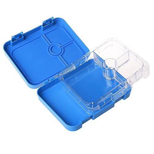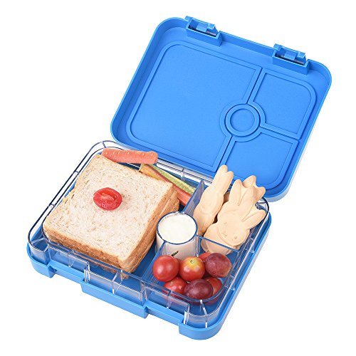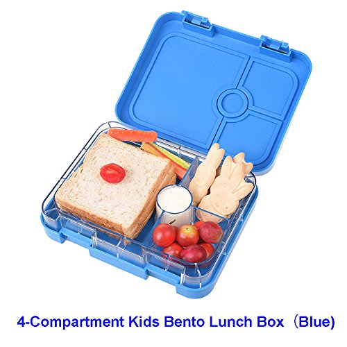SAMROG Kids Bento Lunch Box Container, BPA-Free, Leakproof, Easy to use for young children (4-Compartment, Blue)