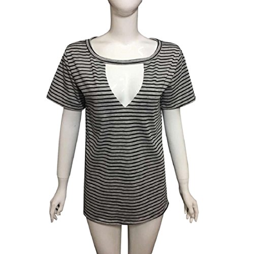 GONKOMA Women V Neck Short Sleeve Striped Blouse T-Shirt Casual Tops Tee