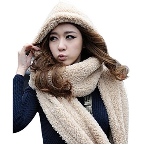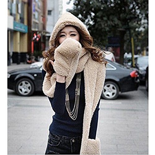 Title : Winter Warmer Women Hoodie Gloves Pocket Earflap Hat Long Scarf Shawl Wraps Scarfs (1)