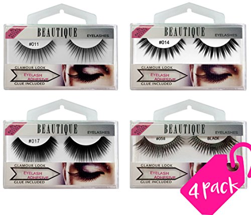 Beautia 4 Pack(4 Pairs) False Eyelashes With Seperate Adhesives B4FLASH01 (B4FLASH02)