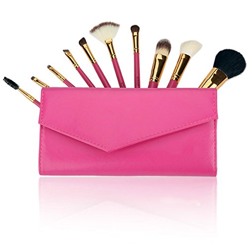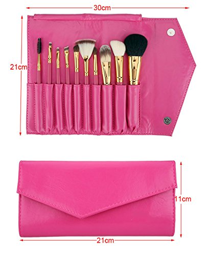 Cnlinkco 10pcs Makeup Brushes Set Synthetic Contains Foundation Contour EyeShadow Powder Brush Cosmetic Tools with Synthetic Leather Case Bag...