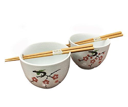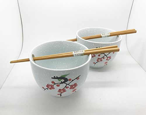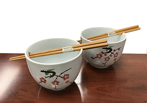 SIZE AND WHAT'S INCLUDED - The beautiful set of bowls measures approximately 5.5 inches diameter and 4 inch tall. It can hold about 35oz. The matching chopsticks are 8 inches long. Set includes 2 bowls and 2 pairs of chopsticks, comes packaged in beautiful gift box