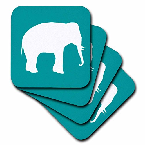 3dRose cst_164913_2 White Elephant Silhouette. Teal Turquoise Aqua Blue Wildlife Animal-Soft Coasters, Set of 8
