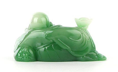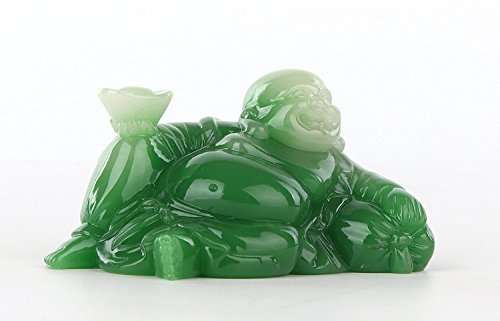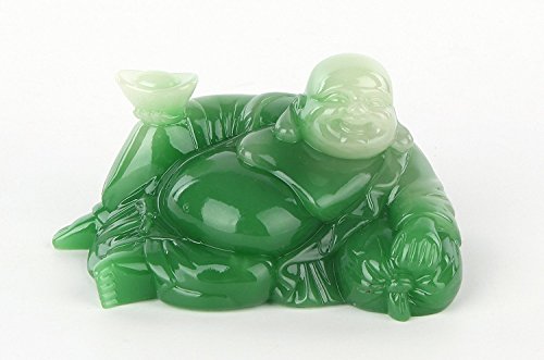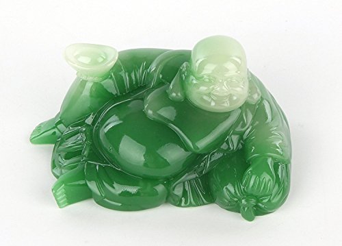 Feng Shui Happy Buddha(Laughing Buddha) with Ingot Statue + Set of 10 Lucky Charm Ancient Coins on Red String, Home Decoration Attract Wealth and Good Luck ,Car Dashboard Decoration,Green Color