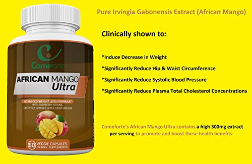 THE RIGHT STUFF: Pure Irvingia Gabonensis Extract (African Mango) has been clinically shown to induce decrease in weight, had significant reduction in hip & waist circumference and further showed significant reductions in systolic blood pressure & plasma total cholesterol concentrations. Our high quality African Mango Ultra contains a high 300mg extract per serving to promote and boost these health benefits