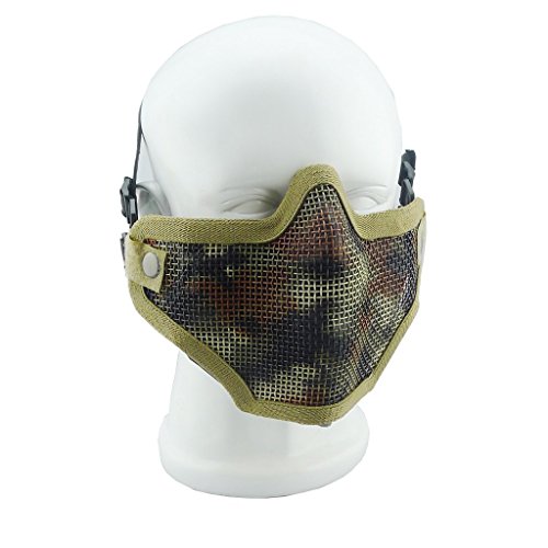 -. Feature : Applicable Scope: Great for airsoft, hunting, war game, Halloween costume, bb gun game and other purpose. / Protection: Full metal mesh face mask that provides superior protection. / Breathability And Adjustability: The mesh makes it good for breath, the side strap with adjust belt ensure the fit. / MATERIAL: The main use of high quality carbon steel. The impact resistance is strong and durable / COMFORTABLE AND LIGHTWEIGHT: The mask weighs 0.28lb, wears almost lightly on your head. Lightweight but can resistant to high impact. The mask approved the ANSIZ80.3 floor test, impact resistance of at least 700FPS.