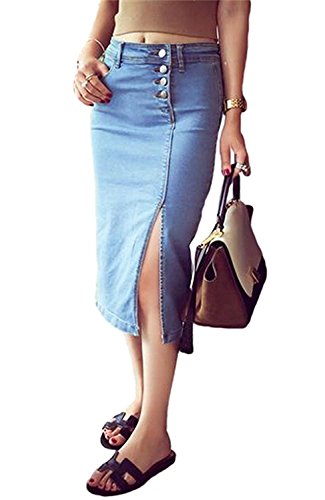 -. Feature : メイン素材: 綿 一年中使えて定番人気!の柔らかストレッチデニムのペンシルスカートです。 / 縦に並ぶボタンとIラインシルエットで脚長美脚効果 フロントスリットと丸みのあるヒップラインで女性らしさアップ! / 素材:ストレッチデニム ボタンを留めた上で手洗い推奨。初めての洗濯は他の物と分けてデニム特有の洗い色落ちがないか確認してください。 / 洗いざらしが素肌に気持ちいいスカートです。サンダルやtシャツと合わせてカジュアルに。ヒールや大振りアクセサリーと合わせてドレッシーに♪ / サイズ S: ウエスト66cm ヒップ78㎝ スカート丈66㎝ M:ウエスト65㎝ ヒップ82㎝ スカート丈 67㎝ L: ウエスト76㎝ ヒップ 92㎝ スカート丈70㎝  ストレッチ素材ですがウエストは二重になっているため3㎝程の伸縮性です。