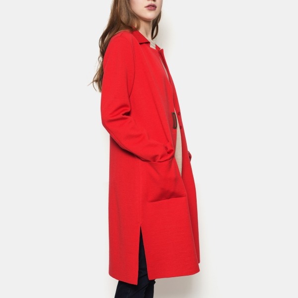 고급스러운 촉감과 좋은 보온성을 가진 100% 울 소재의 가디건입니다. 힙까지 내려오는 기장감과 버튼 디테일이 포인트가 됩니다. 컬러감이 돋보이는 레드 컬러, 모노톤에 그린 포인트를 준 그레이 컬러가 준비되어있습니다.