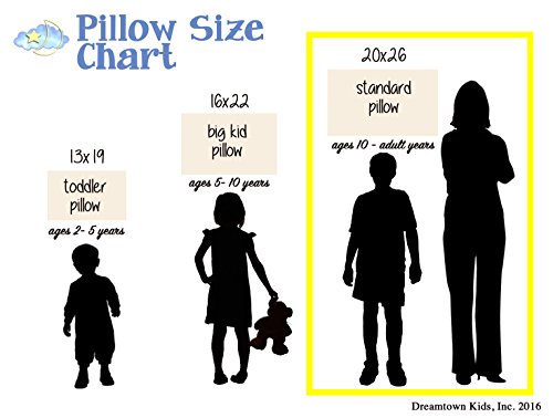 Is your baby growing up and ready for their first pillow? Start out with something that has the right fill and fluff: a "Slim-Standard" Pillow with a Certified Organic Cotton shell and a extremely soft down alternative poly fill by Dreamtown Kids. We designed this pillow with an upper cervical specialist that is the father of a toddler himself. It is 20x26 and we specifically use less fill than others to make sure it is not to thick. If you prefer a thicker pillow for your child please see other options. We made our pillow a little wider than others to give your kid more room to move. We've been reviewed and recommended by chiropractors as the ideal sized pillow and fill for ages 7+ yrs. Your child or toddler will love having their very own pillow: to sleep, for naps at school or daycare, for rides to the grandparents or long trips out of town. For some toddlers, a familiar blanket or pillow can provide comfort when sleeping or when away from home.PROUDLY MADE WITH CARE