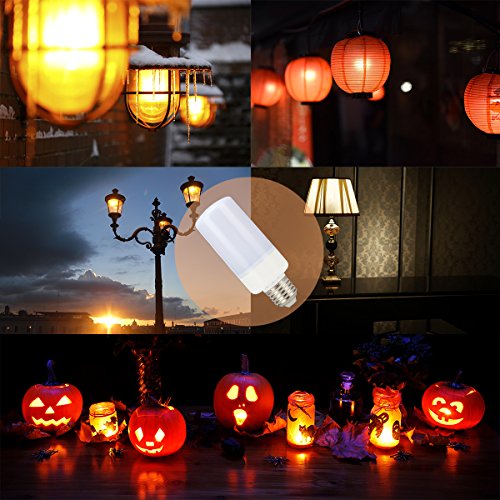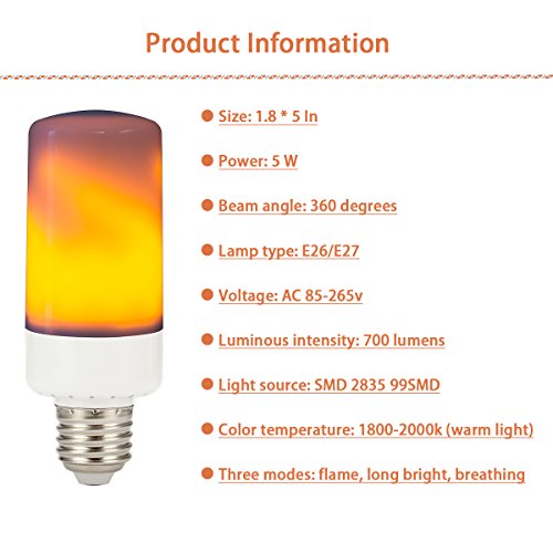 - 【Safe & Green Energy Saving】: This fantastic led flame lamp set the mood that a traditional candle gives off without the danger of an open flame.Excellent heat dissipation and environmental protect, no harmful ingredient, no UV and infrared radiation. The input voltage is AC85-265v and the power 2-5W,various from different mode, E26/E27 base easy to install and save 90% of electricity from traditional flame bulbs,save a lot of money for you.