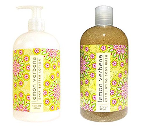 Greenwich Bay Trading Company Botanical Collection Bundle: Lemon Verbena - 16 Ounce Shea Butter Lotion & 16 Ounce Exfoliating Body Wash