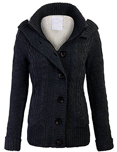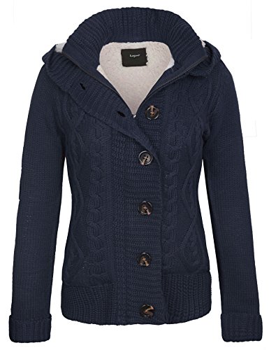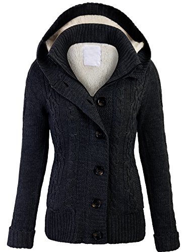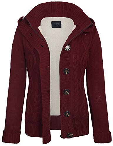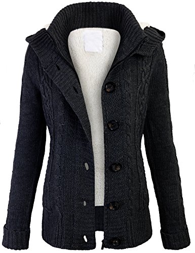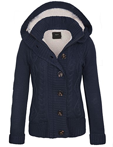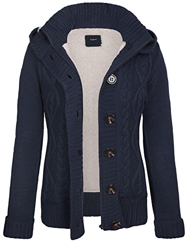 KOGMO Women's Cable Knit Sweater Cardigans with Buttons Zipper Hoodie