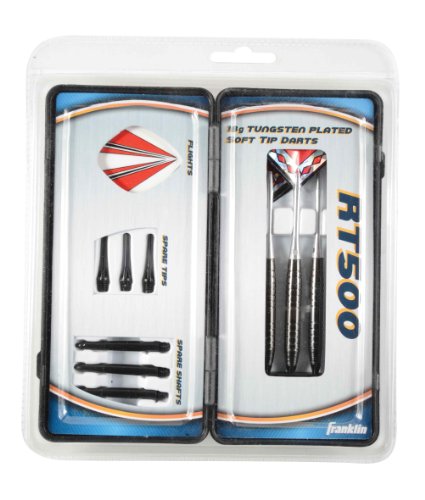 Franklin Sports 18 gram Tungsten Coated Soft Tip Darts come ready to play with 6 flights, 6 shafts, 3 barrels, and 3 soft tips. They feature Tungsten coated steel barrels to use in professional play. The XL aluminum shafts provide unmatched strength and the 2D flights are designed for competitive play. It also includes an elite compact case for unmatched protection.