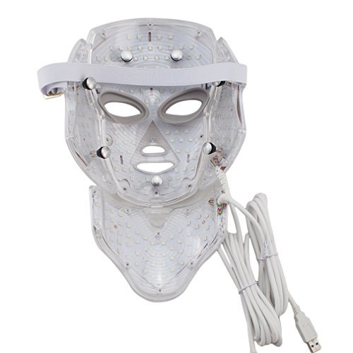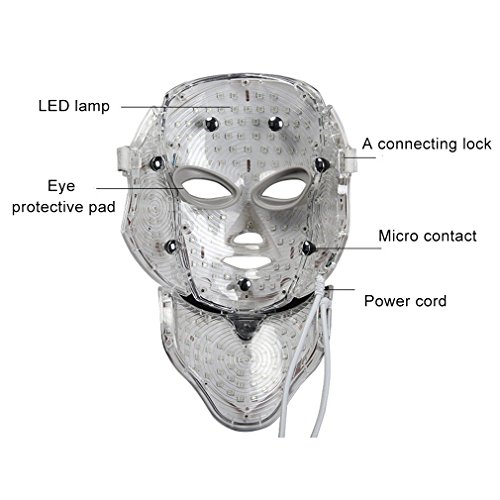 1 * LED Photon Therapy Face Mask 7 Colors Light Skin Treatment Care Rejuvenation Facial Whitening Instruments with US Plug (White)