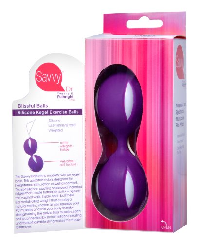 ReleaseDate : 2015-06-22 Studio : Savvy Publisher : Savvy Binding : Health and Beauty Product Description The Savvy Balls are a modern twist on other Kegel exercisers. This updated style is designed to heighten stimulation, as well as safety and comfort. The soft silicone coating has several indented ridges that create further sensation against the vaginal walls. Inside each ball there is a rolling metal weight that creates a natural swirling motion internally as you shift your body. The increased sensation and mild resistance allow you to squeeze your PC muscles more effectively, thereby strengthening them with each use for increased sensation and heightened arousal. Each ball is coated in soft, non-porous, and hypoallergenic silicone, and the soft durable string makes them easy to remove. Measurements: 3.75 inches in length, 1.4 inches in diameter. Material: Silicone, ABS plastic. Color: Purple. 0