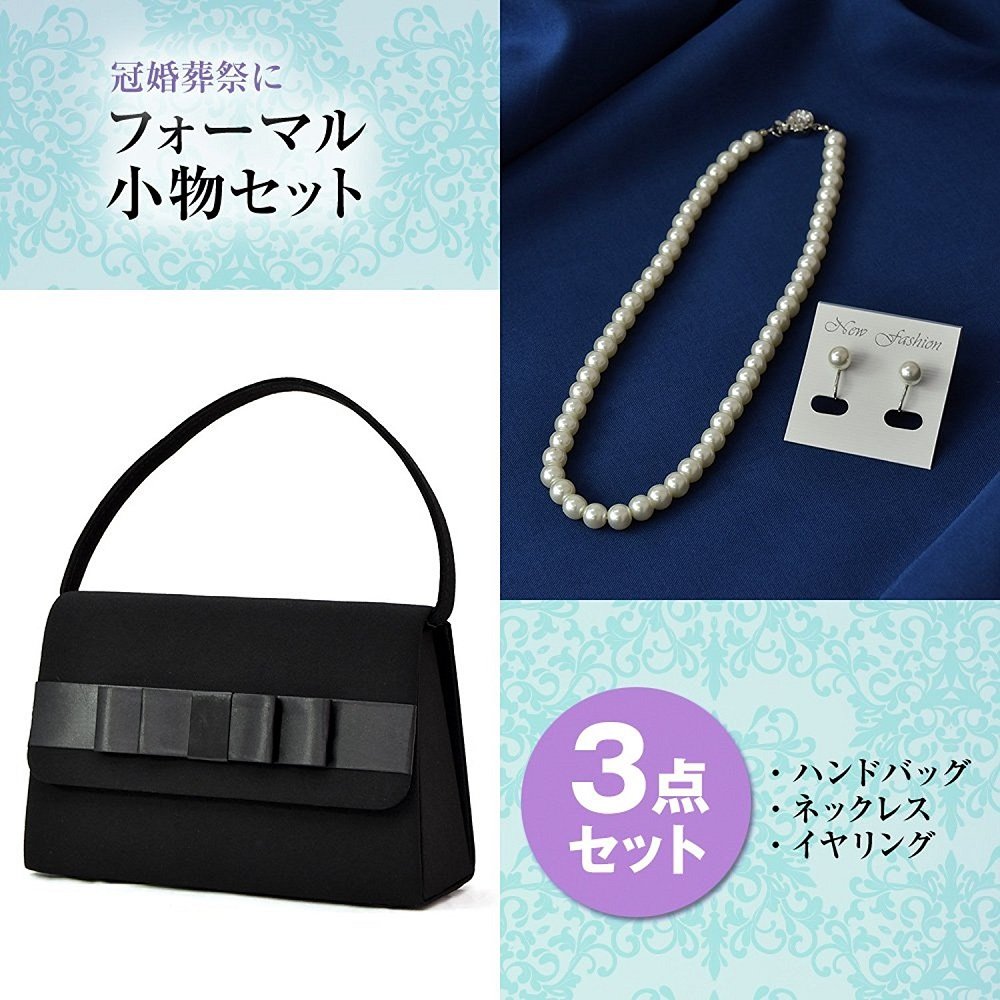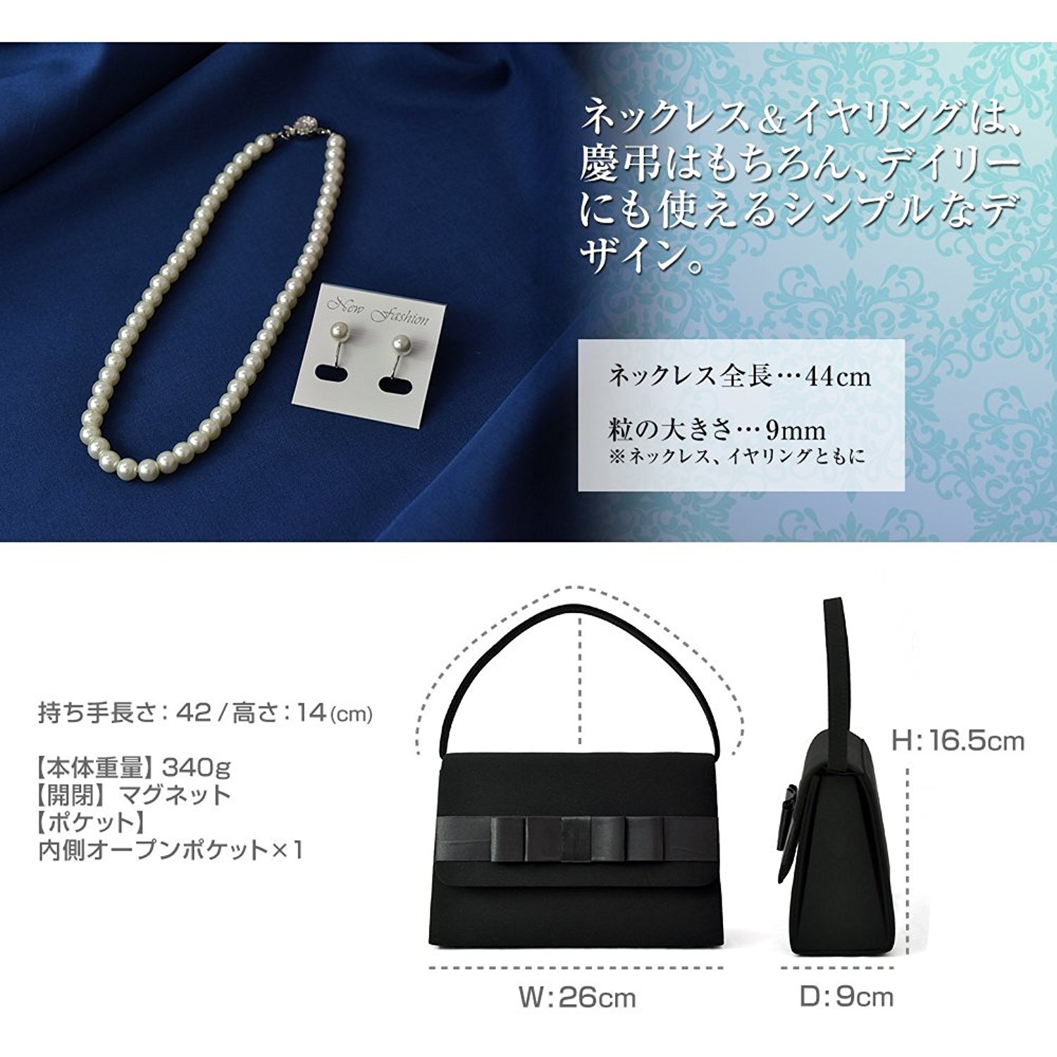 [Formal Accessories Set] 3-piece set of handbags, pearl necklaces & earrings (double ribbon)