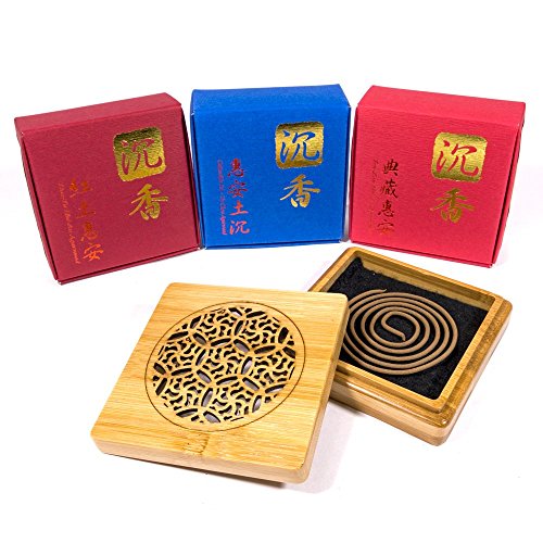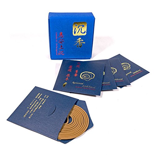 Middle-Top Grade Agarwood Incense Coils Set - 3 levels each 10pcs - With Wood Burner Case