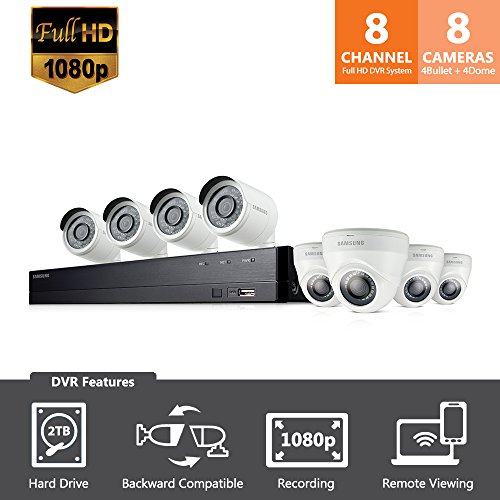 Samsung SDH-C74083 8 Channel Full HD Video Security System with Internal 2TB HDD, Includes 4x Dome Camera, 4x Bullet Camera, Remote Control, Mouse