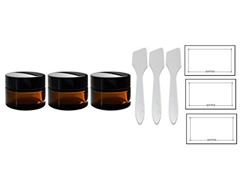 Amber Glass Thick Heavy Wall Straight Sided Balm Jar with Liner - 1 oz / 30 ml (3 Pack) + Spatulas and Labels