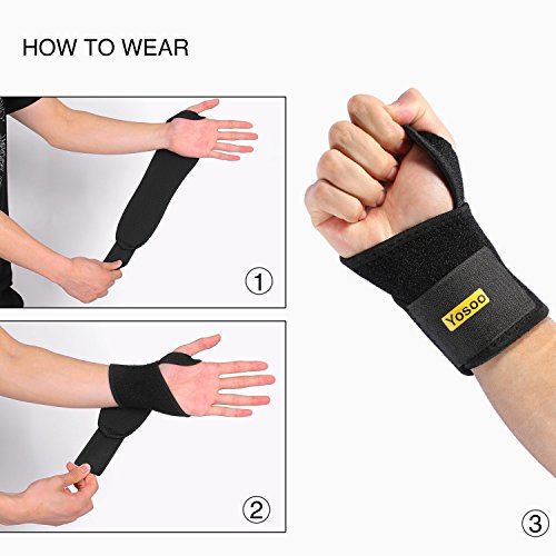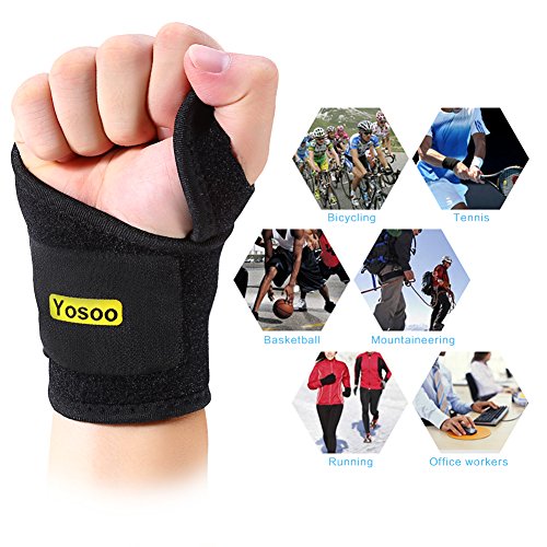 -. Feature : EFFECTIVE WRIST WRAP: Help to relieve pain or swelling & Prevent the injury while doing sports / UNIQE HUMANIZED DESIGN: Unique humanized design keeps full range of movement of thumb and fingers & The Thumb Loop makes it wrap around easy to put on and take off / BREATHABLE NEOPRENE: Durable high-elastic and moisture wicking Latex-free neoprene material make your wrist more comfortable,provide gentle support and soothing warmth / ADJUSTABLE SIZE: This wrist brace comfortably fit most size,Suitable for left and right hand,Adjustable tension / YOSOO GUARANTEE: Put your worries aside! If you don't like it for any reason,please contact us. We will replace it or give your money back for any reason. Go ahead!