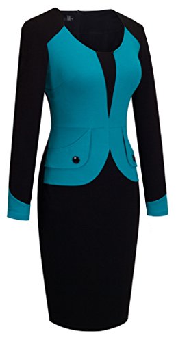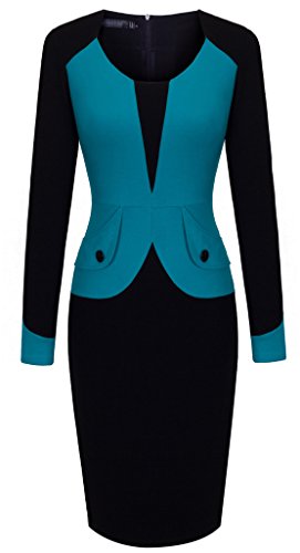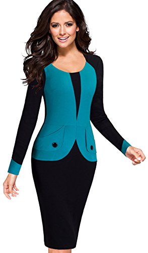 HOMEYEE Women's Chic Patchwork Sheath Elegant Business Slim Pencil Dress B343
