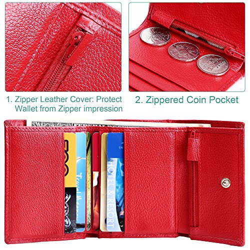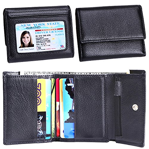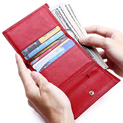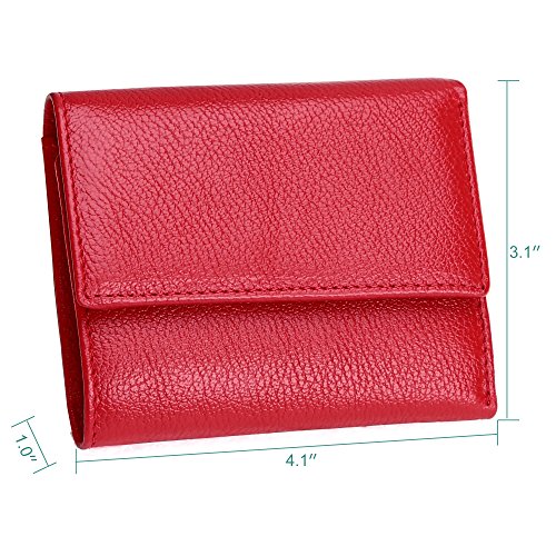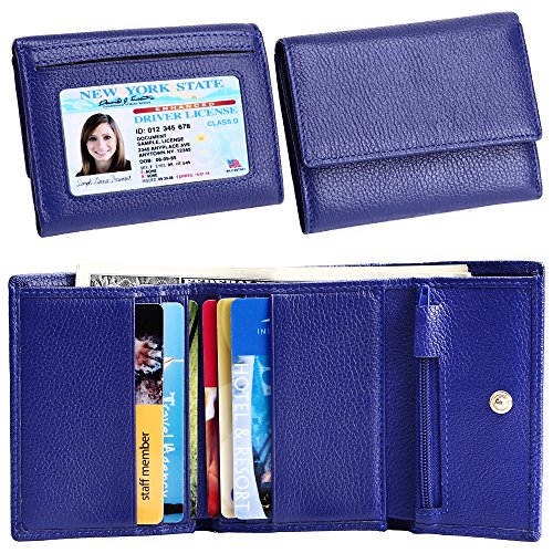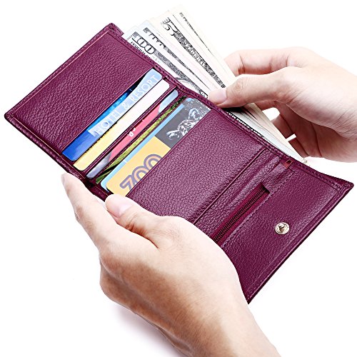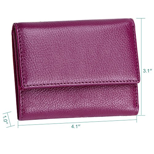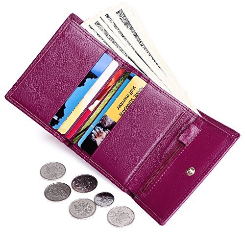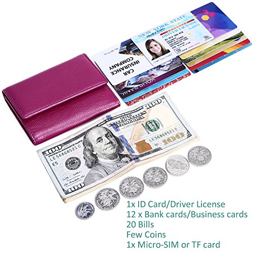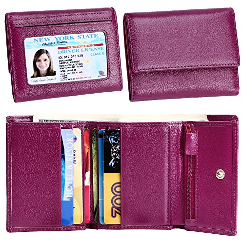 Made of Soft leather, well made, durable, a perfect size, and Great little women wallet for a smaller handbag/ purse. Takes up little room but has enough spots for credit cards and license.