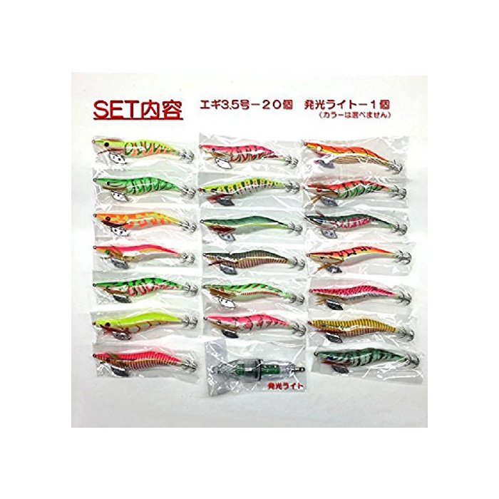 세트 내용:에기 3.5 호20개+발광 라이트1개(색은 빨강,청,녹색의 3패턴) ※색은,선택할 수 있어 없기 때문에 양해 바랍니다.