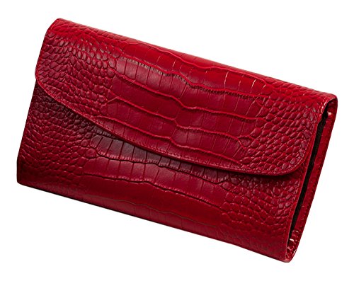 Time Factory AJ-BB629RED "Croco" Leather Multi Compartment Jewelry Clutch with Snap Closure, Red
