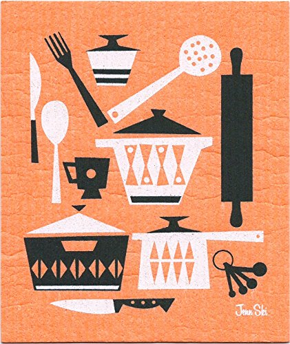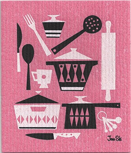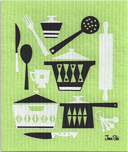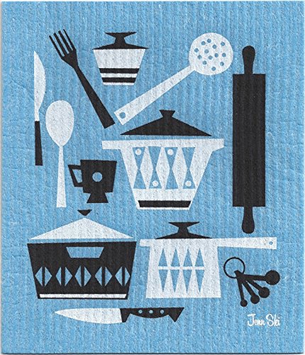 SWEDISH DISHCLOTHS, RETRO SCANDINAVIAN KITCHEN UTENSIL DESIGN - SET OF 4 COOL COLORS