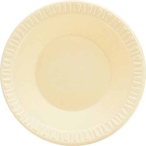 This SOLO 35BWHQ Quiet Classic disposable honey-colored plastic bowl has a 3.5 oz. capacity, is made of polystyrene foam for strength, insulation, and resistance to moisture leak-through, and is laminated for resistance to cuts. It is suitable for serving hot and cold food items, and is compatible with Solo CL5BW plastic lid (sold separately) for storing and transporting food items.