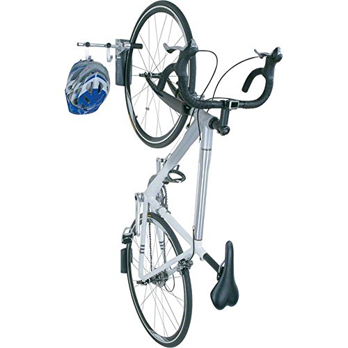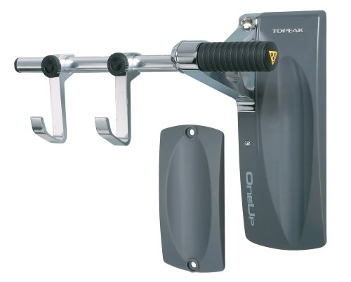 Product Description Elegant and functional, the OneUp is the perfect bicycle storage solution for apartments and other small spaces. A molded rubber bar keeps the front wheel stationary preventing the bike from twisting. Includes all mounting hardware plus a molded rear wheel pad to prevent tire marks on the wall. 0