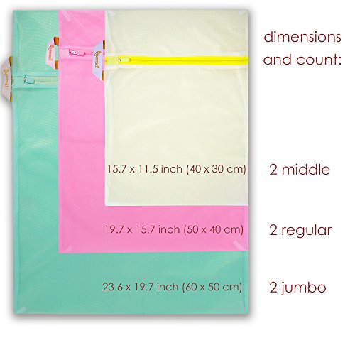 - YOU WILL GET 6 Bags and 1 Ironing net: 2 Jumbo 24" x 20",regular 20" x 16", medium 16" x 12", each with a zip lock and 1 iron mesh clothes 24" x 16"